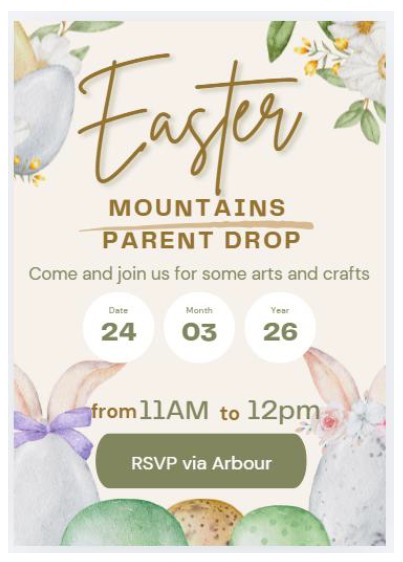 Tuesday 24th Mar 26Easter Parent Drop In - Mountains - 24th March 2026 Read more